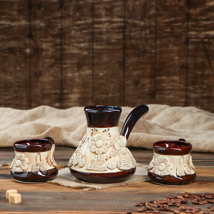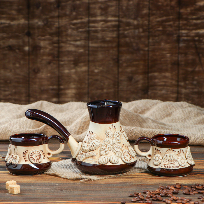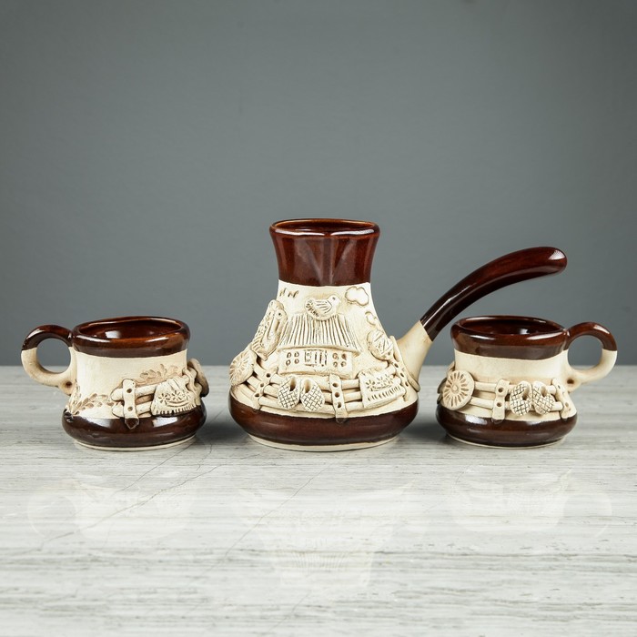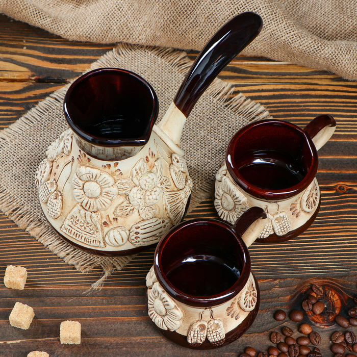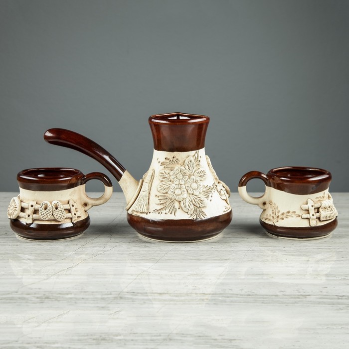 Кофейный набор лепка, 3 предмета, 0,5 л/ 0,2 л