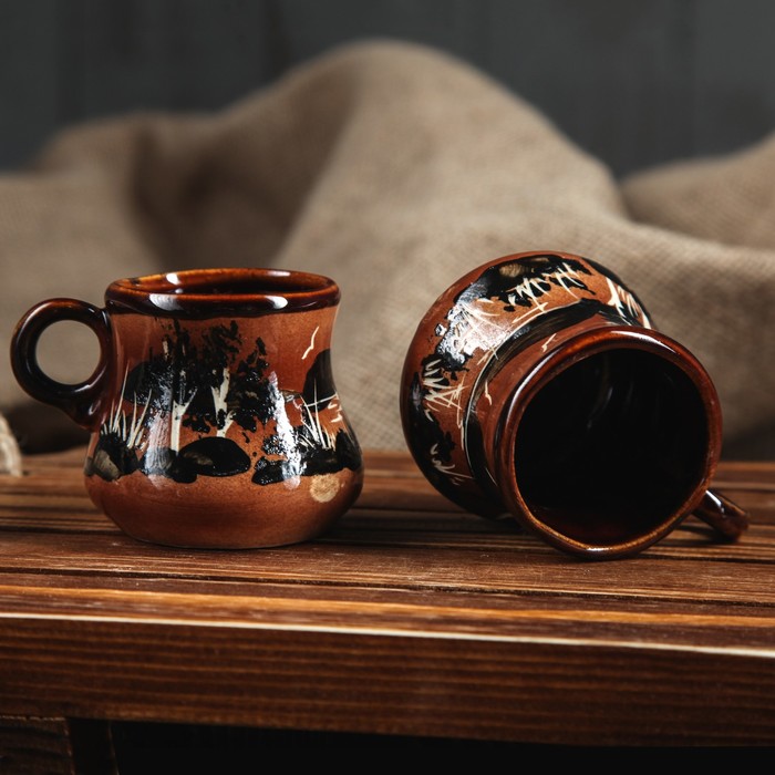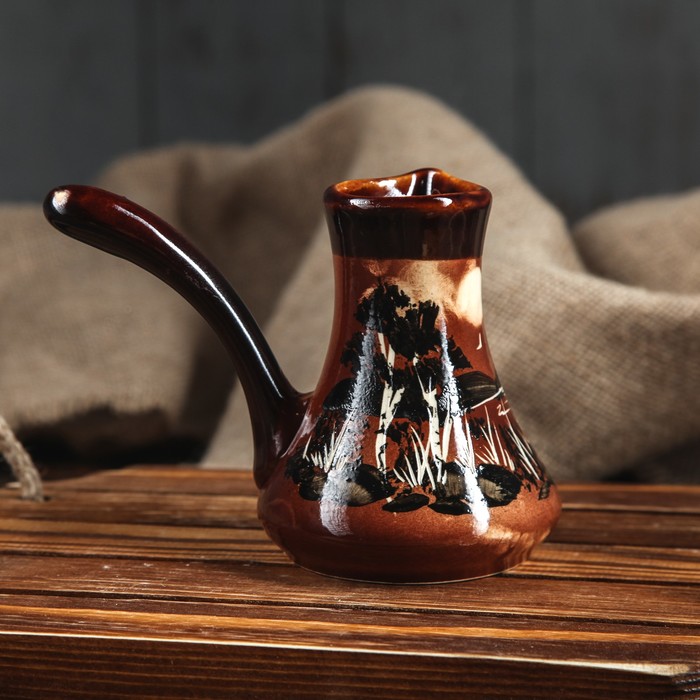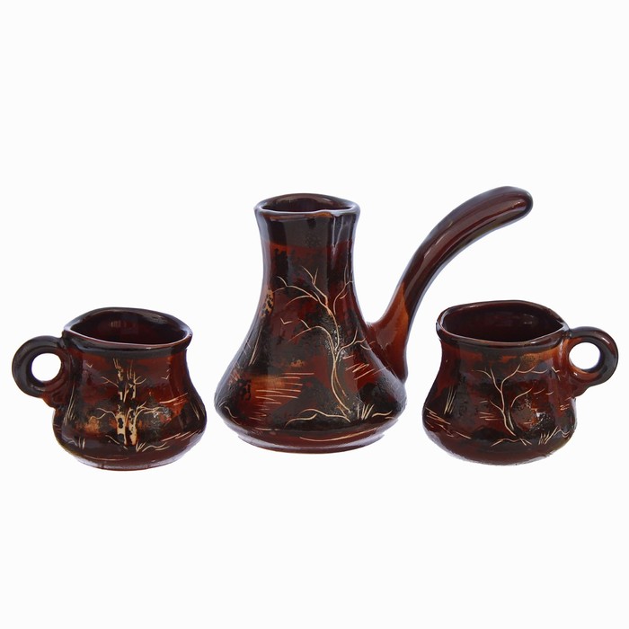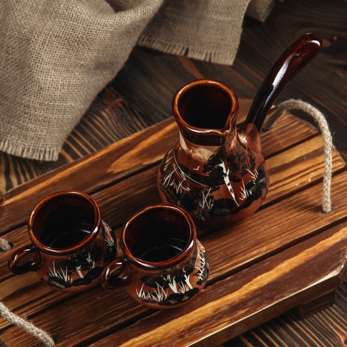 Кофейный набор малый, с росписью: турка 0,45 л, чашки 0,25 л