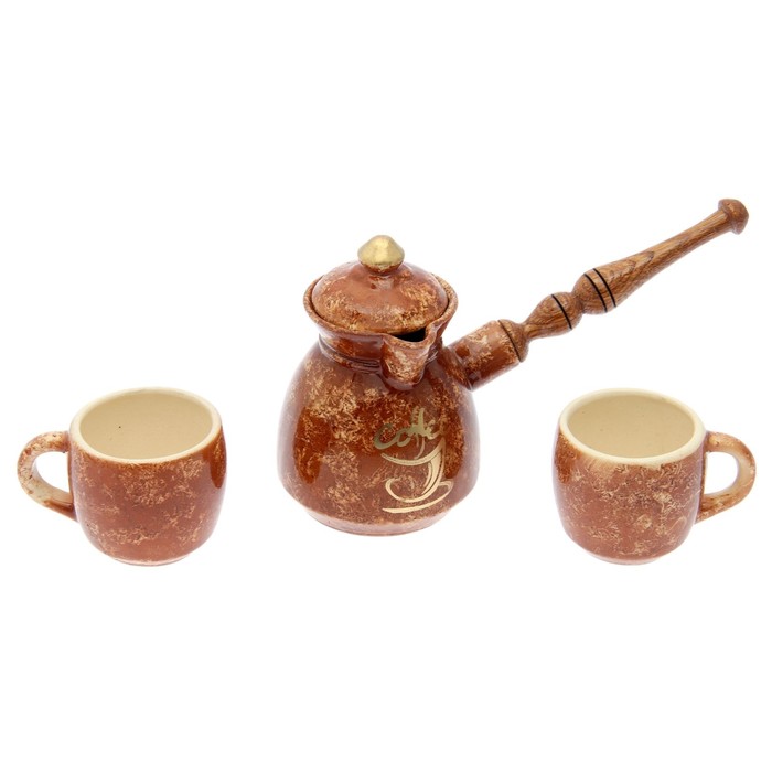 Кофейный набор "Мрамор" коричневый, 3 предмета, 0,45 л/ 0,07 л