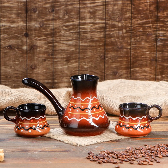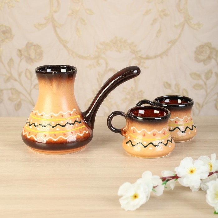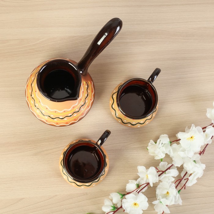 Кофейный набор "Пестровка", турка малая, 2 чашки