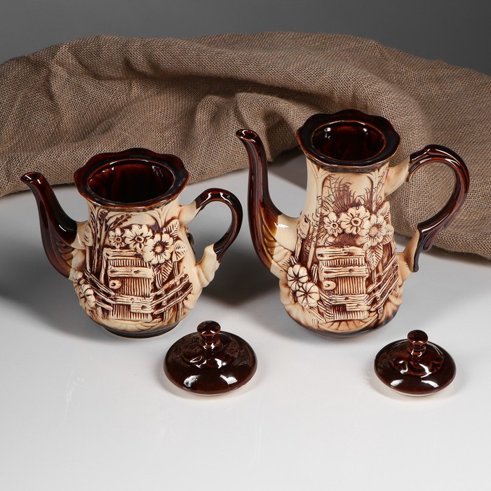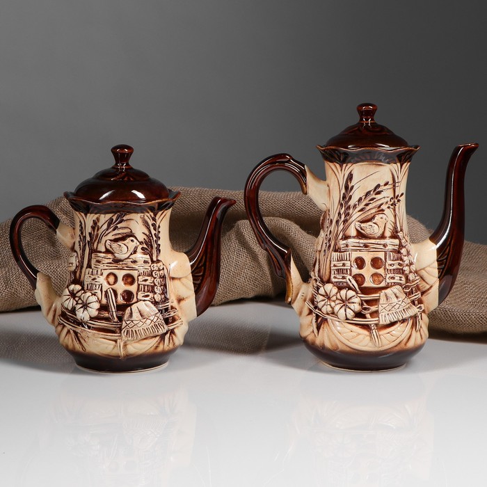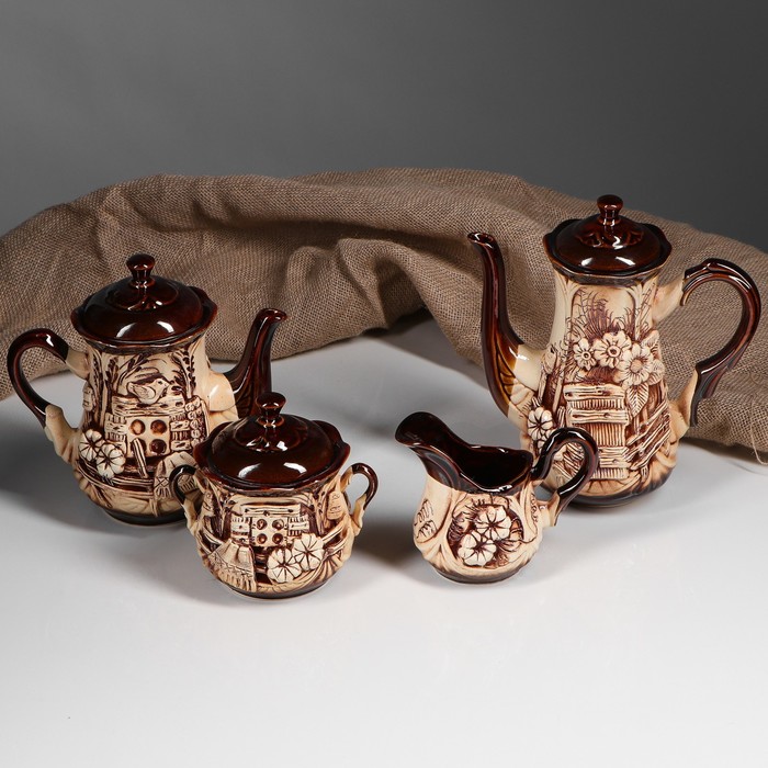 Все предметы набора изготовлены вручную из керамики. Этот экологически чистый материал легко переносит высокие и низкие температуры, устойчив к царапинам, потёртостям, не имеет запахов и примесей. Керамическая посуда хорошо держит тепло напитка, не влияя на его вкус.