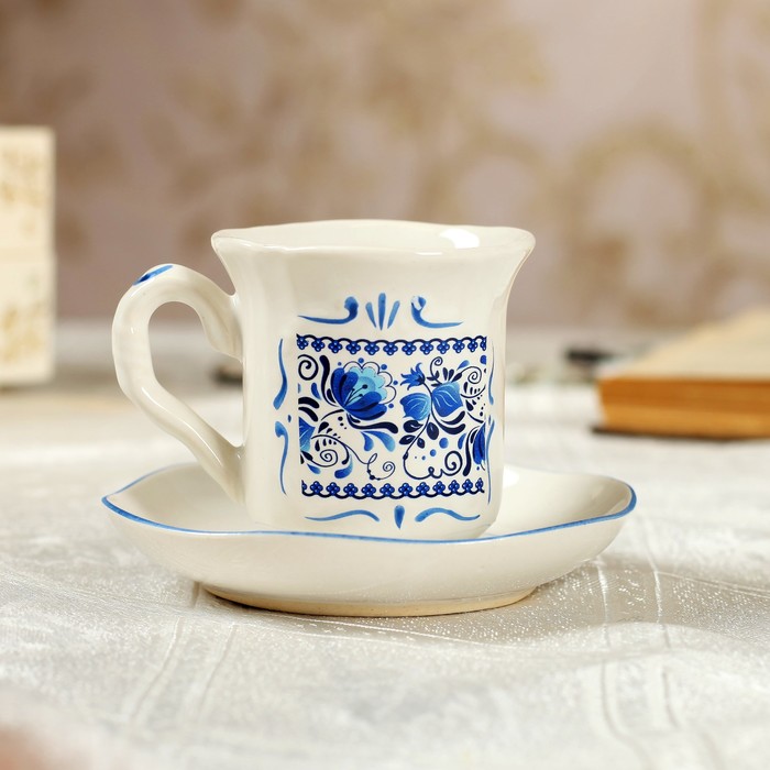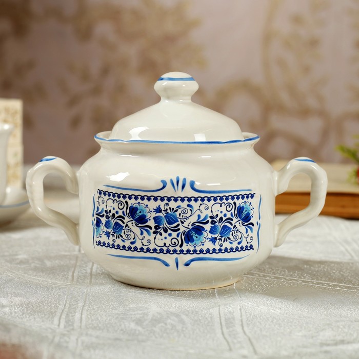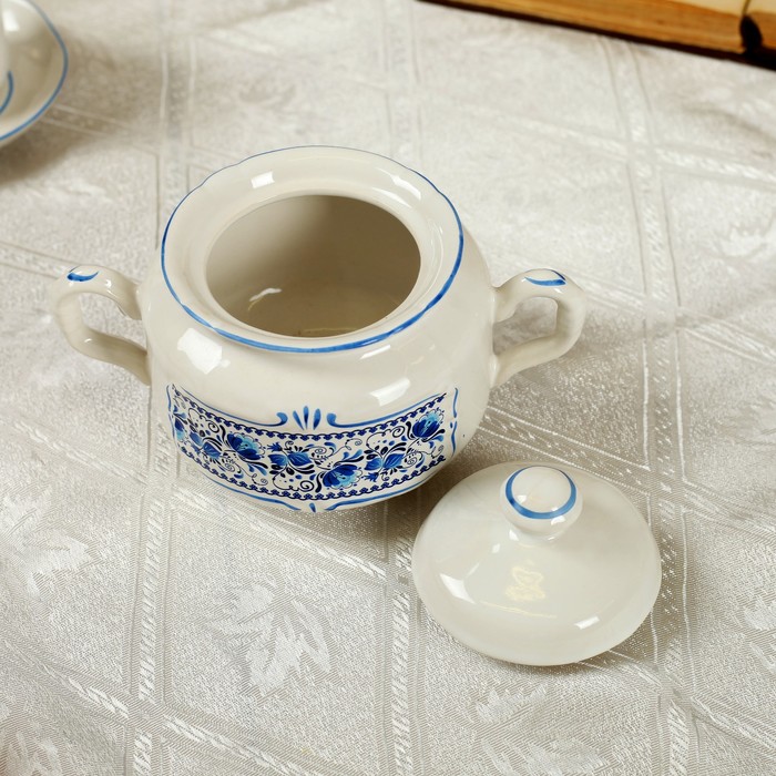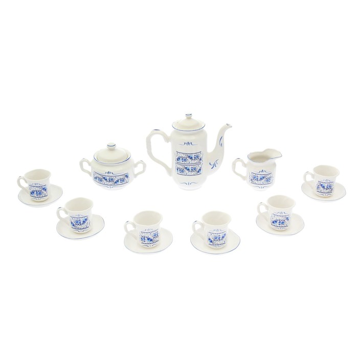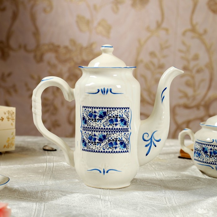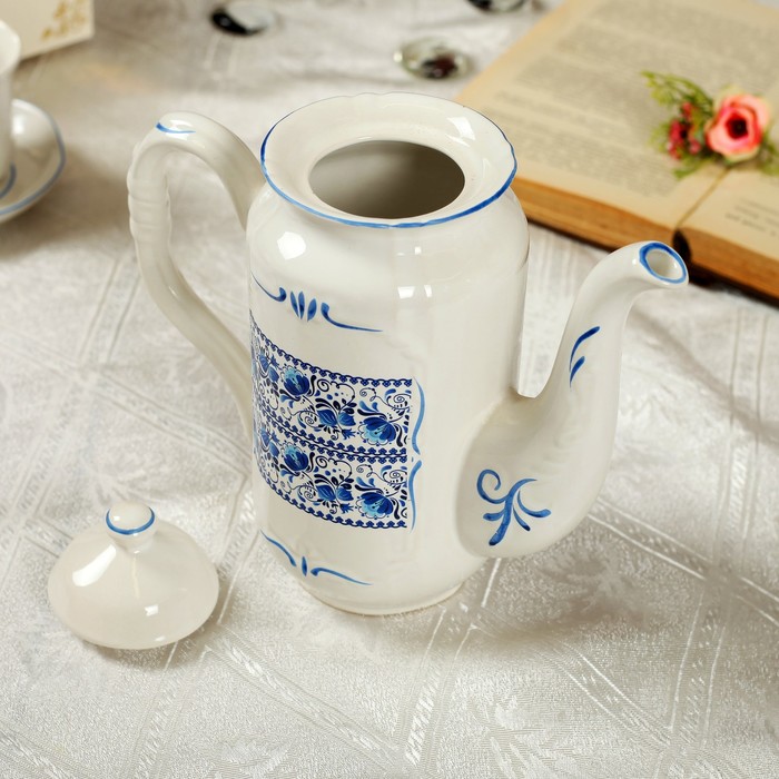 Кофейный сервиз "Скиф" 14 предметов, гжель, 0,6 л чайник, 0,3 л сахарница, 0,15 л сливочник, 0,05 л чашки