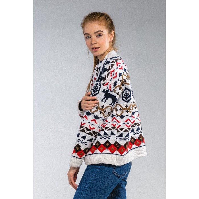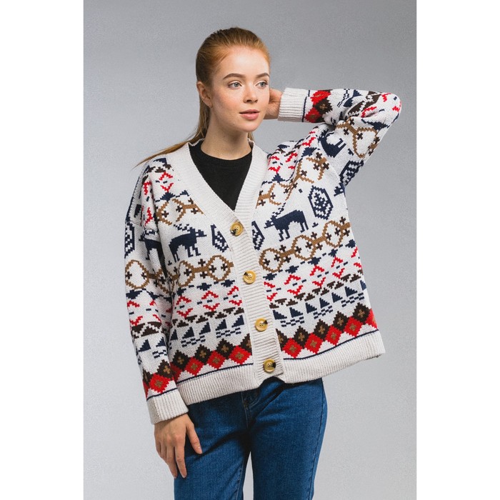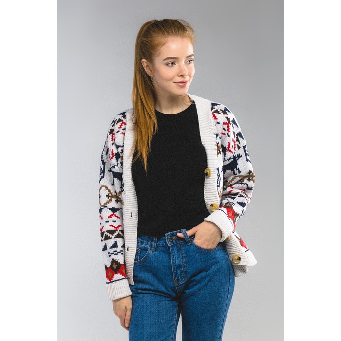 Кофта женская на пуговицах 406 (орнамент олени) one size