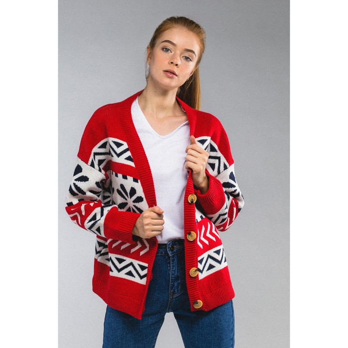 Кофта женская на пуговицах 407а (орнамент цветы) one size