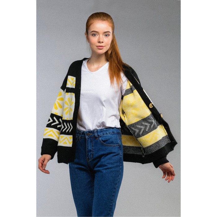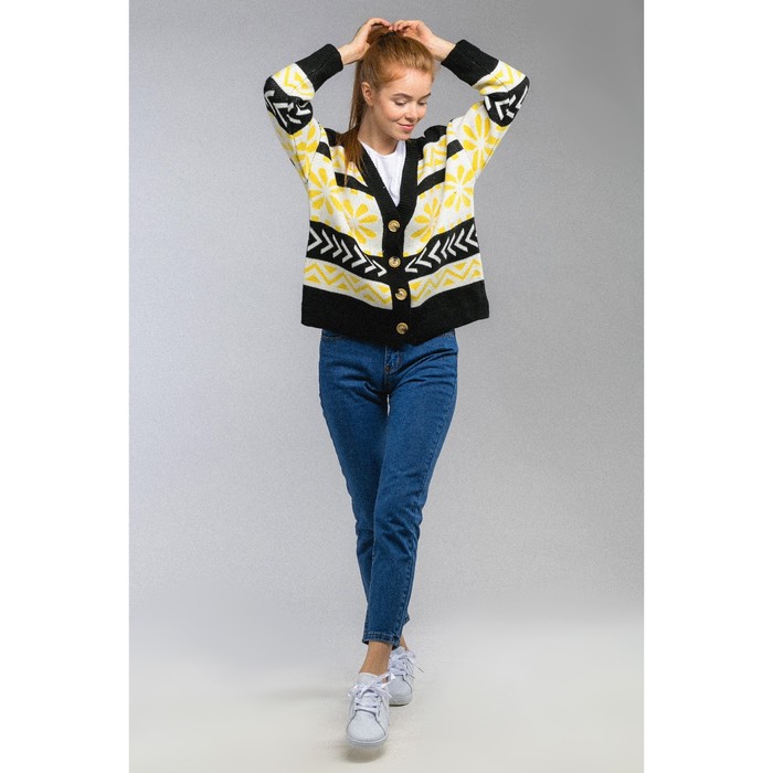 Кофта женская на пуговицах 407в (цветочный орнамент), one size