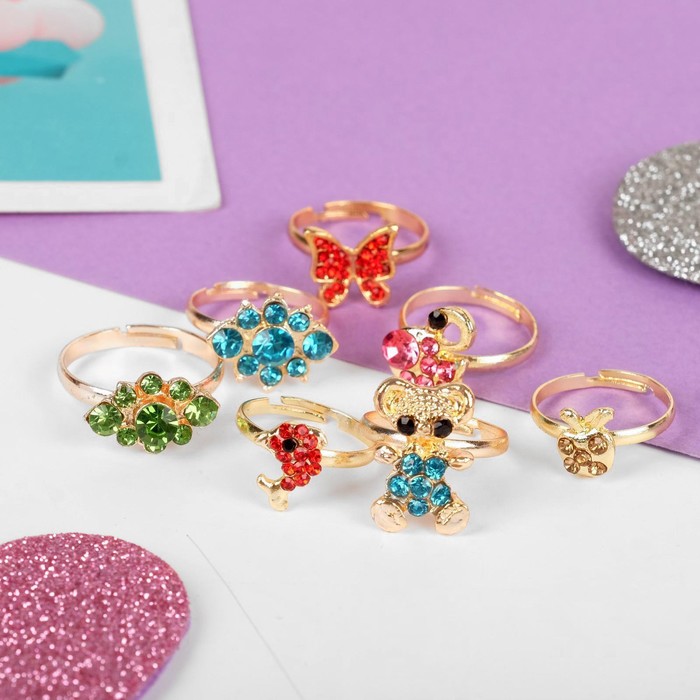 Кольцо детское "Выбражулька" девичье, форма МИКС, цвет МИКС в золоте, фас 100 шт