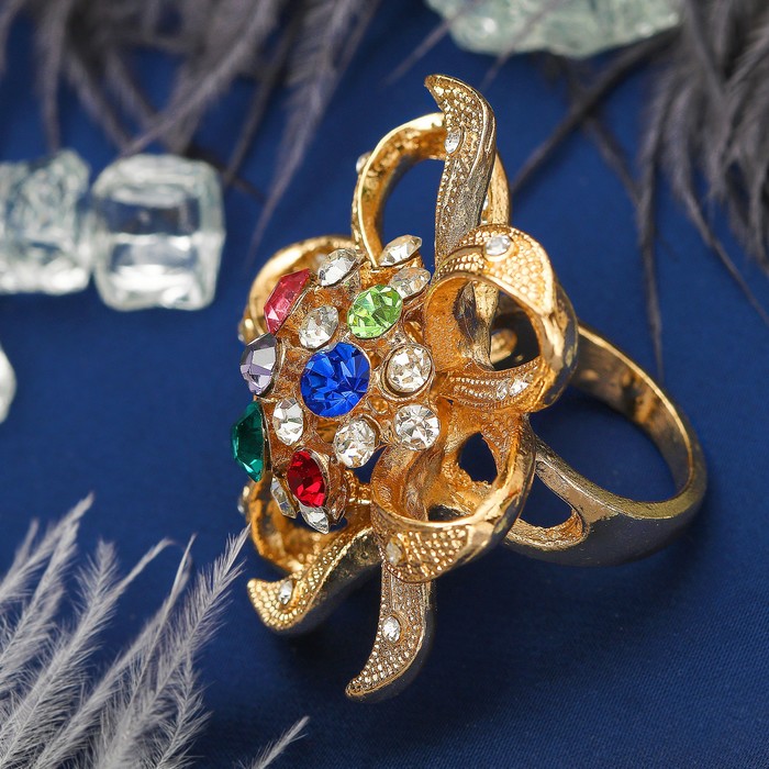 Ни один стиляга не будет выглядеть современно без искусно подобранных украшений, которые завершат его образ! Бижутерия — это современная недорогая альтернатива изделиям из золота и прочих драгоценных металлов. Кольцо "Роскошь королевы" цветок, цветное в золоте, размер 17,18,19 микс — это то, что добавит вам шарма!
