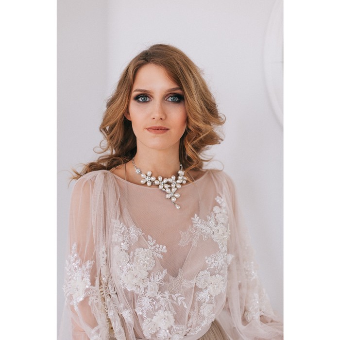 Ни один стиляга не будет выглядеть современно без искусно подобранных украшений, которые завершат его образ! Бижутерия — это современная недорогая альтернатива изделиям из золота и прочих драгоценных металлов. Колье "Жемчужина" цветочное настроение, цвет белый в серебре — это то, что добавит вам шарма!