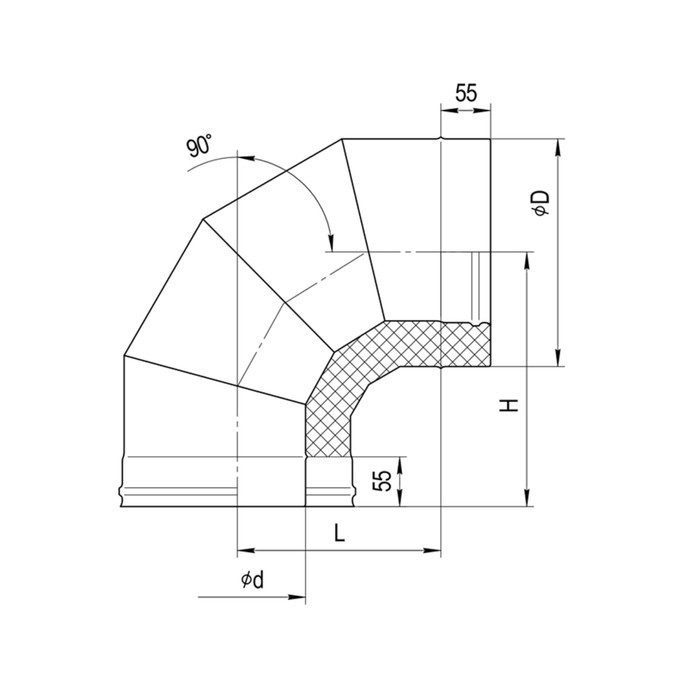 Колено Феррум утепленное угол 90°, нержавеющее 430/0,8 мм, зеркальное, d 120/200 мм, по воде 37203