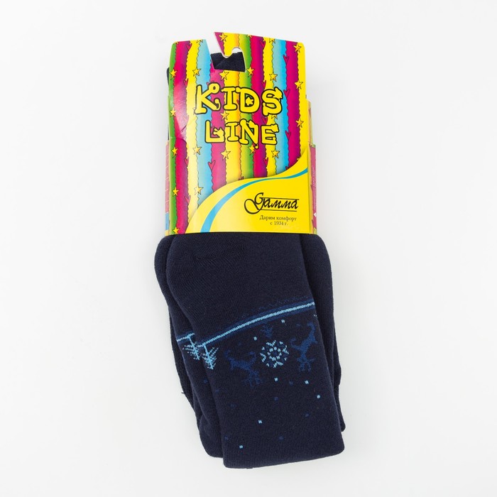Колготки детские плюшевые С207(С) "Орнамент олени" цвет тёмно-синий, рост 116-122