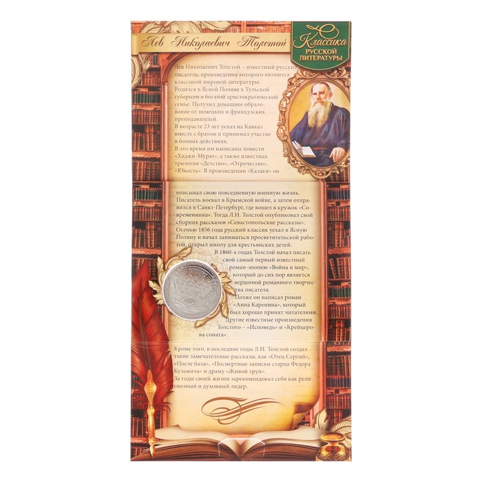 Коллекционная монета "Л.Н. Толстой"