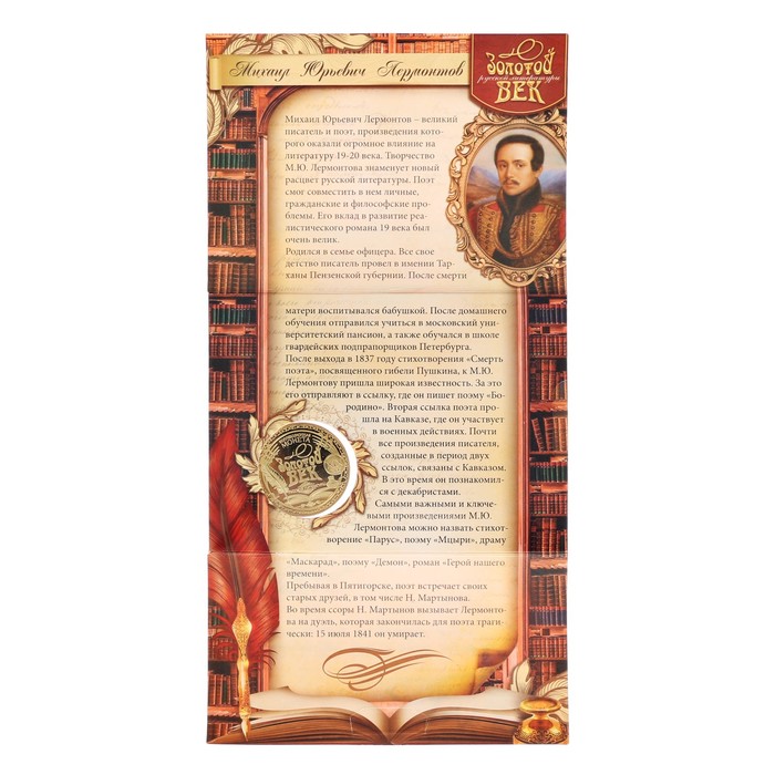 Коллекционная монета "М.Ю. Лермонтов"
