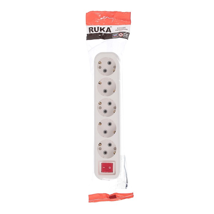 Колодка RUKA, 5 розеток, с з/к, с выключателем, 32.74.511.0400,