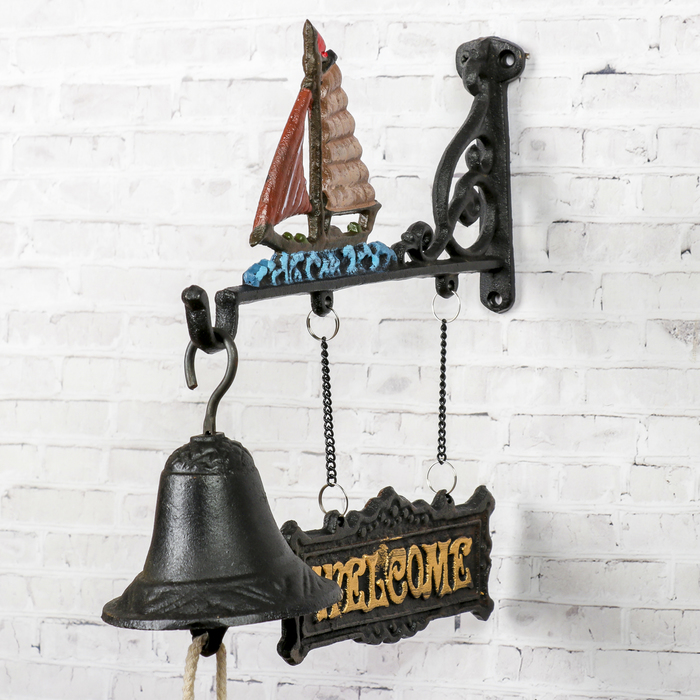 Колокол сувенирный металл "Парусник. Welcome" 27,5х25х9,7 см