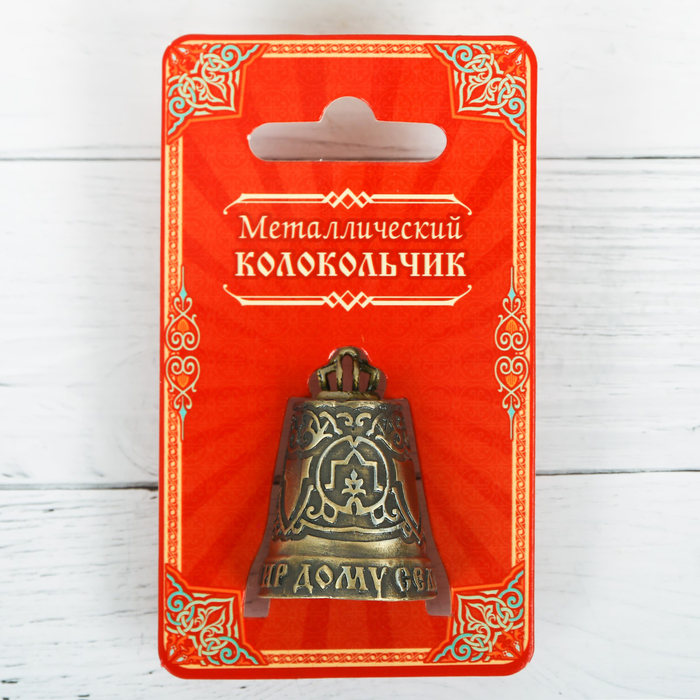 Колокольчик "Мир дому сему" — сувенир в полном смысле этого слова. И главная его задача — хранить воспоминание о месте, где вы побывали, или о том человеке, который подарил данный предмет. Преподнесите эту вещь своему другу, и она станет достойным украшением его дома.