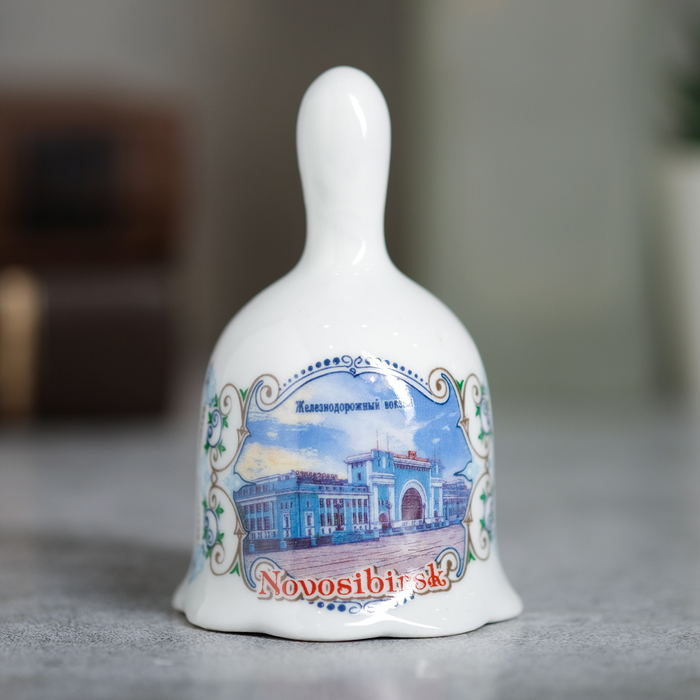 Яркий колокольчик «Новосибирск» с классическим русским орнаментом изготовлен из белоснежной керамики с нанесением изображений насыщенными натуральными красками. Дизайн разработан профессионалами компании «Сима-ленд» с чувством национальных особенностей местности и прорисовкой основных достопримечательностей: крупнейшего Новосибирского государственного академического театра оперы и балета, а также живописного железнодорожного вокзала.
