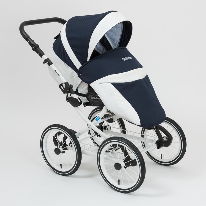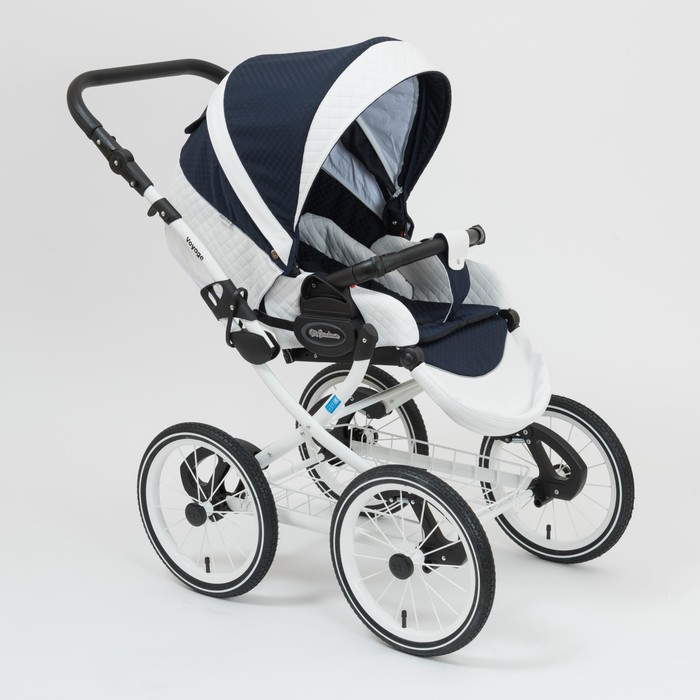 Коляска 2 в 1 Voyage Premium, 50% эко-кожа, белый перфорированный - тёмно-синий в принт