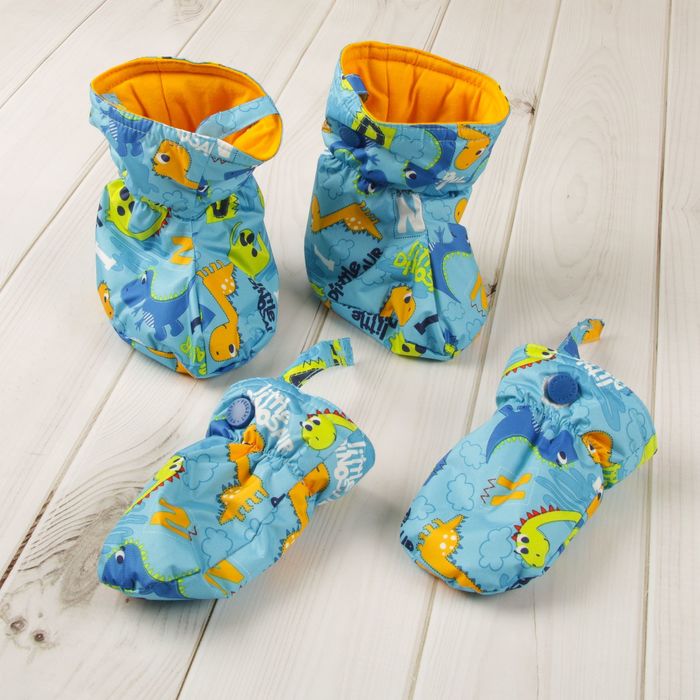 - Варежки и пинетки в моделях на рост от 68 до 80 см, силиконовые штрипки в моделях на рост от 86 до 98 см.