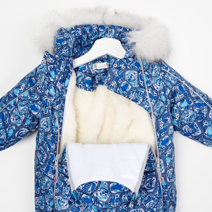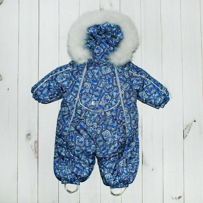 Комбинезон для мальчика (капюшон с опушкой), рост 74 см, цвет голубой