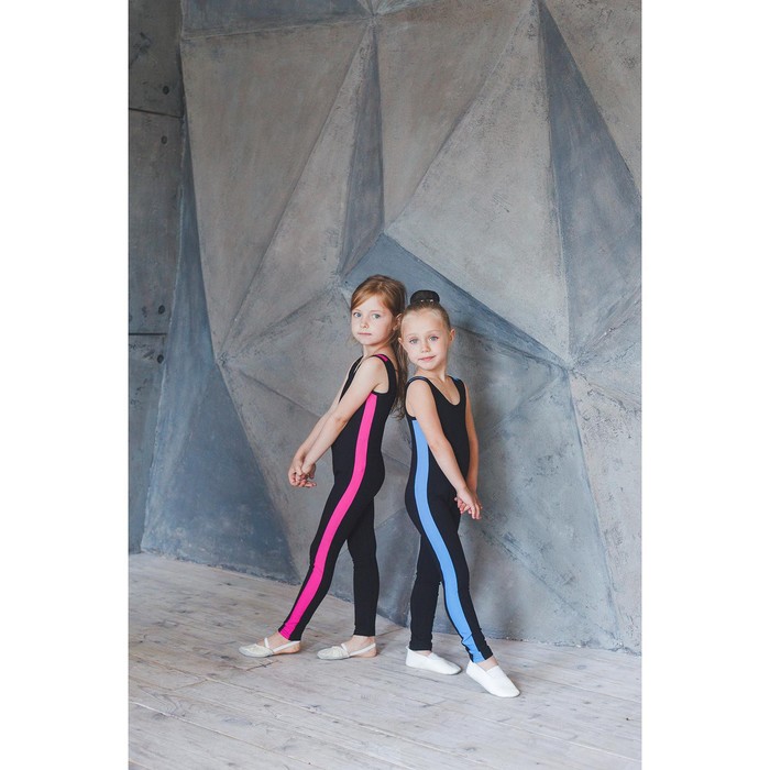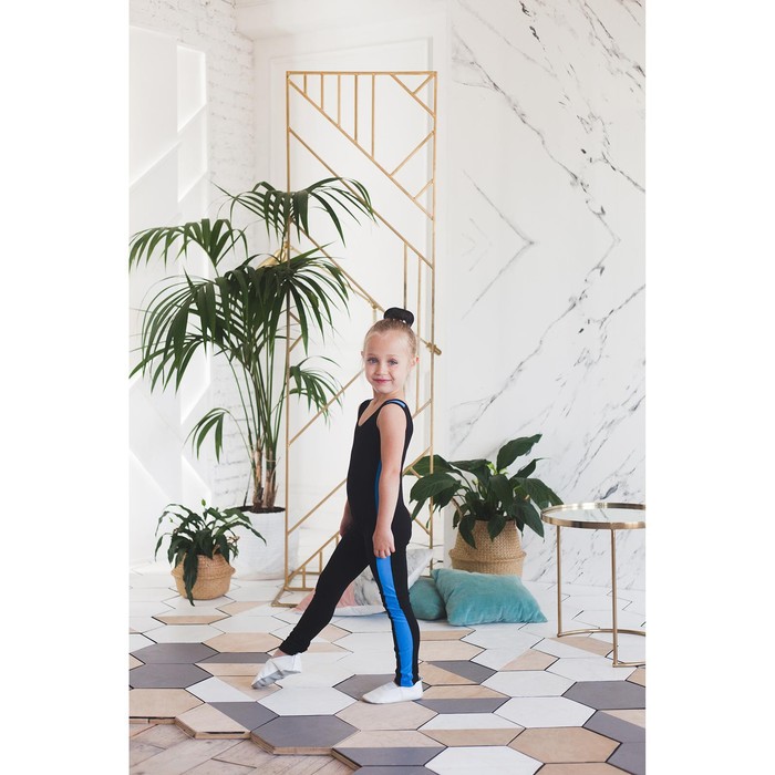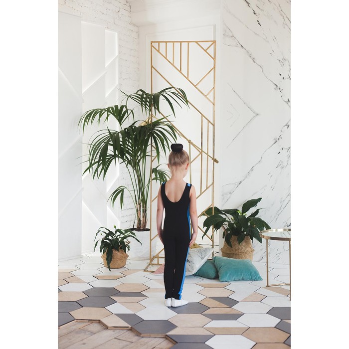 Комбинезон гимнастический с лампасами (GD2102), размер 32, цвет чёрный-бирюза