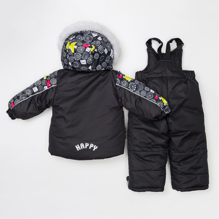 Комплект детский (Куртка + Полукомбинезон), рост 80 см, цвет чёрный(птички)