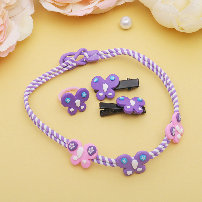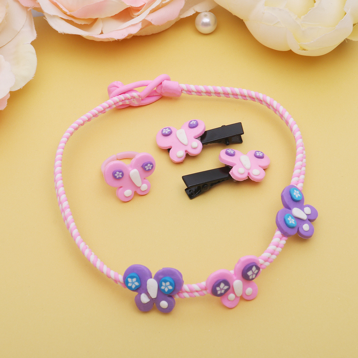 Комплект детский "Выбражулька" 4 предмета: 2 заколки, чокер, кольцо, бабочки, цвет МИКС