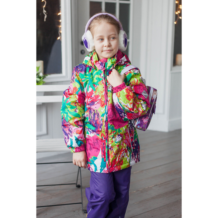 Комплект для девочек "YONNE", рост 98 см, цвет белый с принтом/тёмно-лилoвый 71273_М