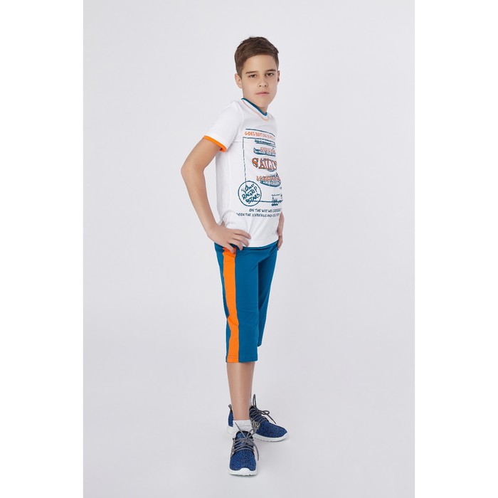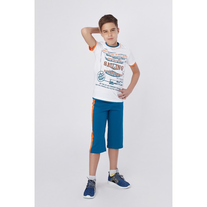 Комплект для мальчика (футболка+шорты), рост 128 см (8 лет), цвет тёмно-бирюзовый/белый (арт. Н464)