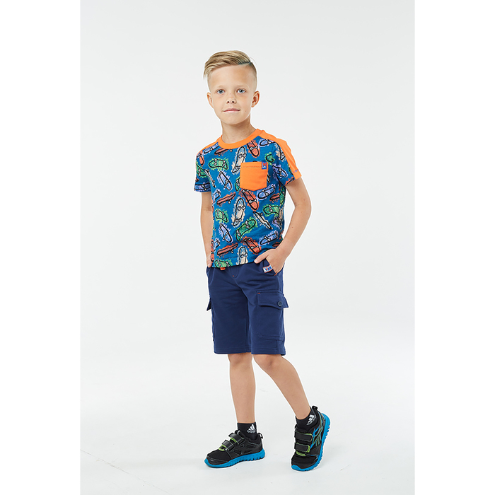 Комплект для мальчика (футболка, шорты), оранж. скейт/т.синий, рост 98