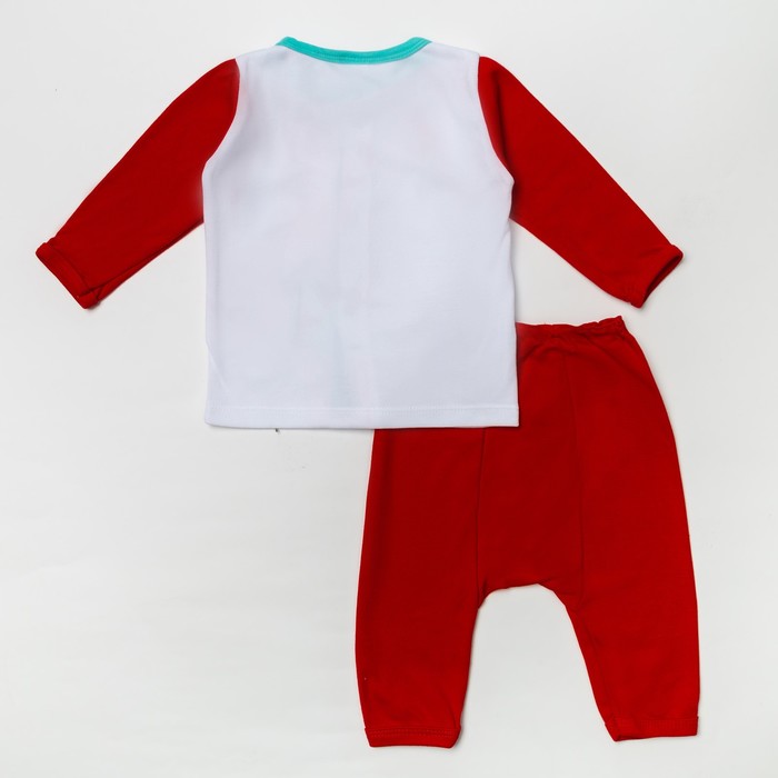 Комплект: кофточка длинный рукав на застежке/штанишки, 6-12 мес., 100% хлопок, цвет красный микс