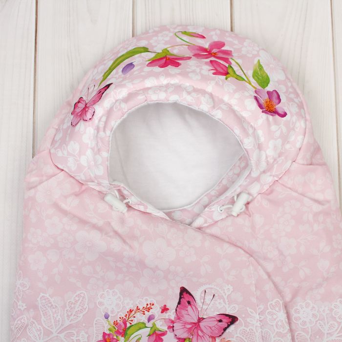 - Конверт нежной расцветки, украшенный эксклюзивным принтом. Синтепон плотностью 100 г/м², который используется в качестве утеплителя, согреет дитя, ткань верха Dewspo защитит от непогоды, а хлопковый подклад позаботится о том, чтобы нежная кожа новорождённого дышала. Чтобы кроху не продуло, предусмотрены эластичная утяжка на капюшоне и ветрозащитная планка.