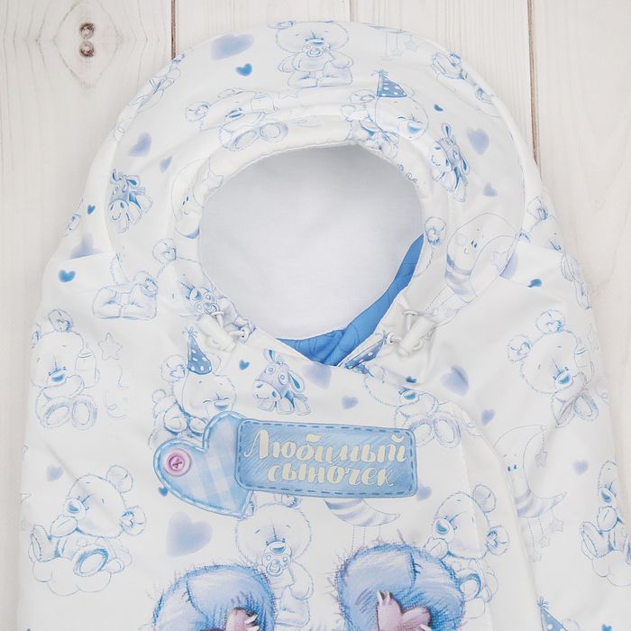 - Конверт нежной расцветки, украшенный эксклюзивным принтом. Синтепон плотностью 100 г/м², который используется в качестве утеплителя, согреет дитя, ткань верха Dewspo защитит от непогоды, а хлопковый подклад позаботится о том, чтобы нежная кожа новорождённого дышала. Чтобы кроху не продуло, предусмотрены эластичная утяжка на капюшоне и ветрозащитная планка.