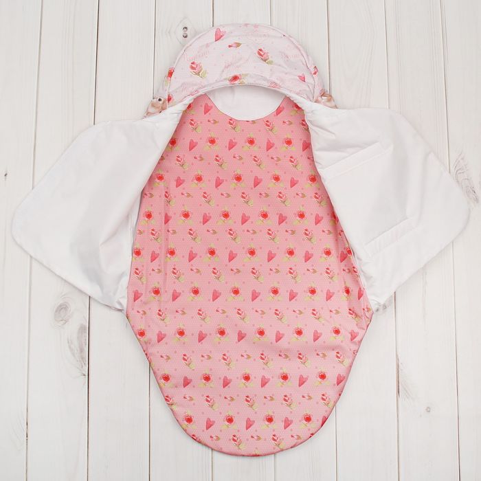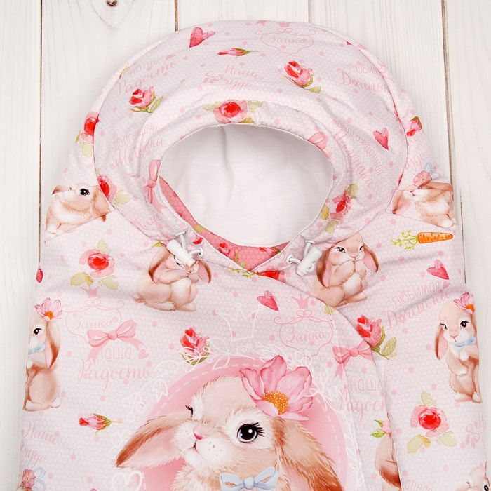 - Конверт нежной расцветки, украшенный эксклюзивным принтом. Синтепон плотностью 100 г/м², который используется в качестве утеплителя, согреет дитя, ткань верха Dewspo защитит от непогоды, а хлопковый подклад позаботится о том, чтобы нежная кожа новорождённого дышала. Чтобы кроху не продуло, предусмотрены эластичная утяжка на капюшоне и ветрозащитная планка.