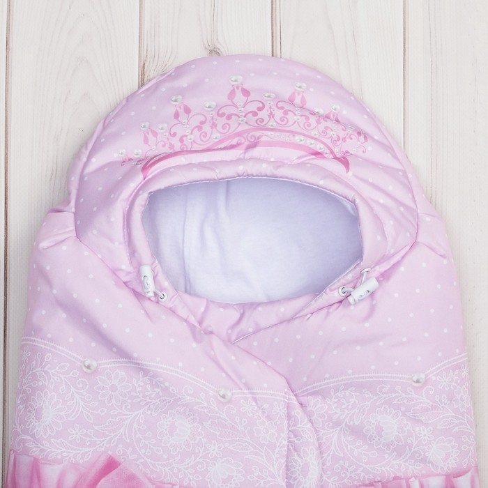 - Конверт нежной расцветки, украшенный эксклюзивным принтом. Синтепон плотностью 100 г/м², который используется в качестве утеплителя, согреет дитя, ткань верха Dewspo защитит от непогоды, а хлопковый подклад позаботится о том, чтобы нежная кожа новорождённого дышала. Чтобы кроху не продуло, предусмотрены эластичная утяжка на капюшоне и ветрозащитная планка.