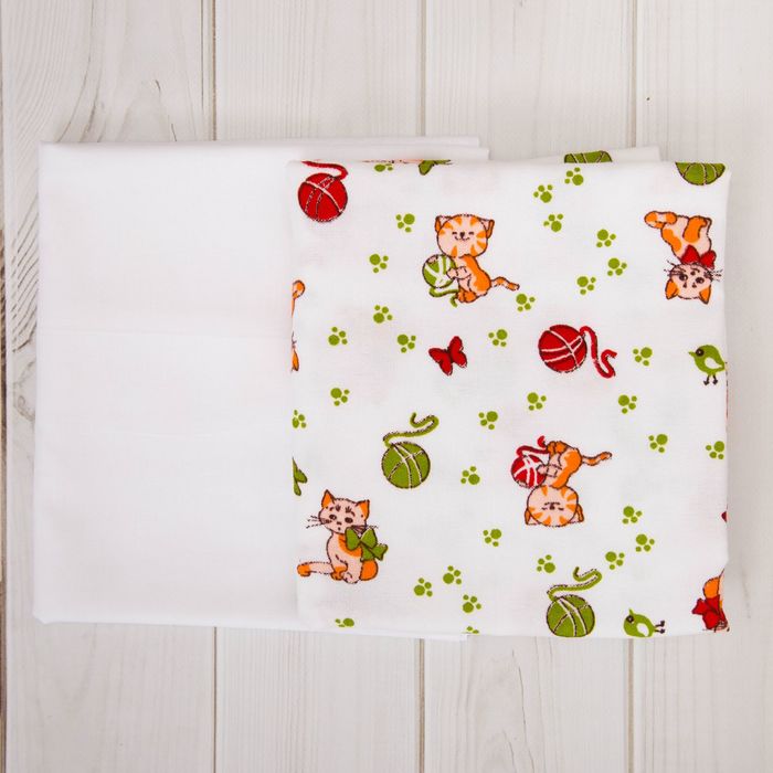 В комплекте: пододеяльник (110х140 см), уголок (80х80 см), пелёнка фланелевая (75х100 см), пеленка ситцевая (80х100 см), распашонка фланелевая (р. 20), распашонка ситцевая (р. 20), чепчик фланелевый (р. 20), чепчик ситцевый (р. 20).