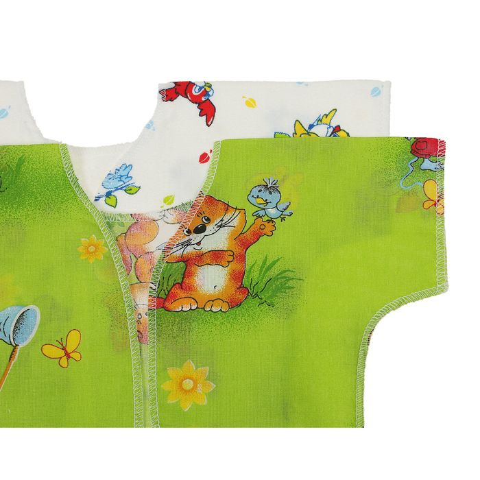 В комплекте: пододеяльник (110х140 см), уголок (80х80 см), пелёнка фланелевая (75х100 см), пеленка ситцевая (80х100 см), распашонка фланелевая (р. 20), распашонка ситцевая (р. 20), чепчик фланелевый (р. 20), чепчик ситцевый (р. 20).