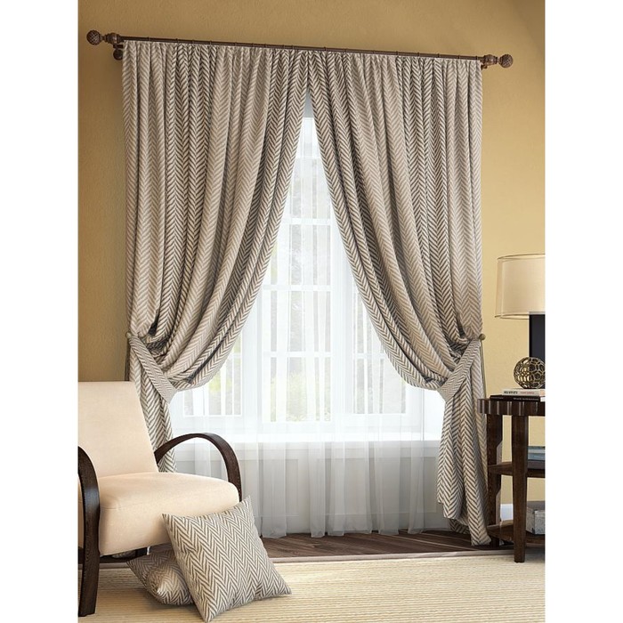 Комплект штор «Салет», размер 220х280 см - 2 шт и 2 подхвата, цвет бежево-коричневый