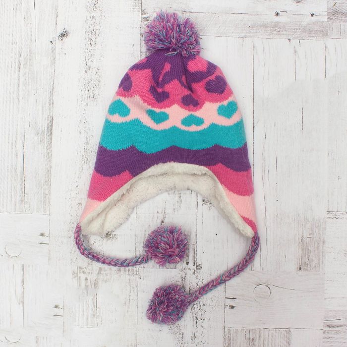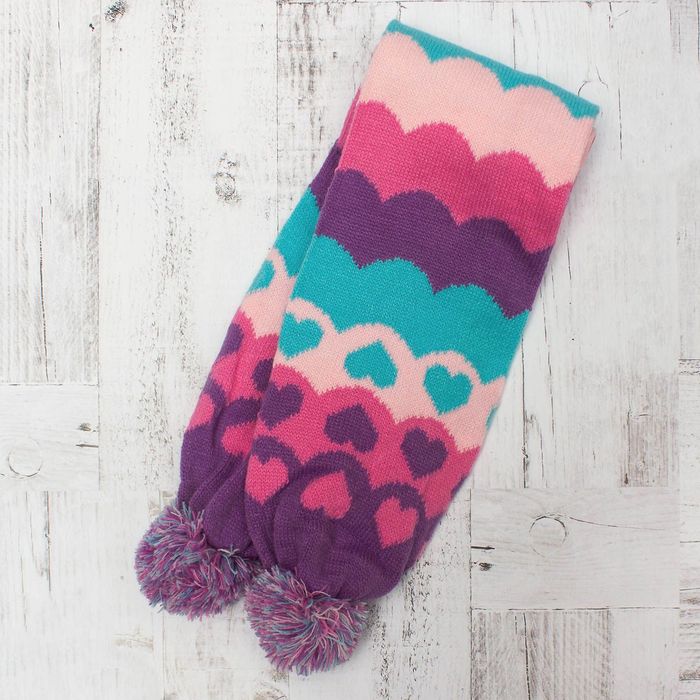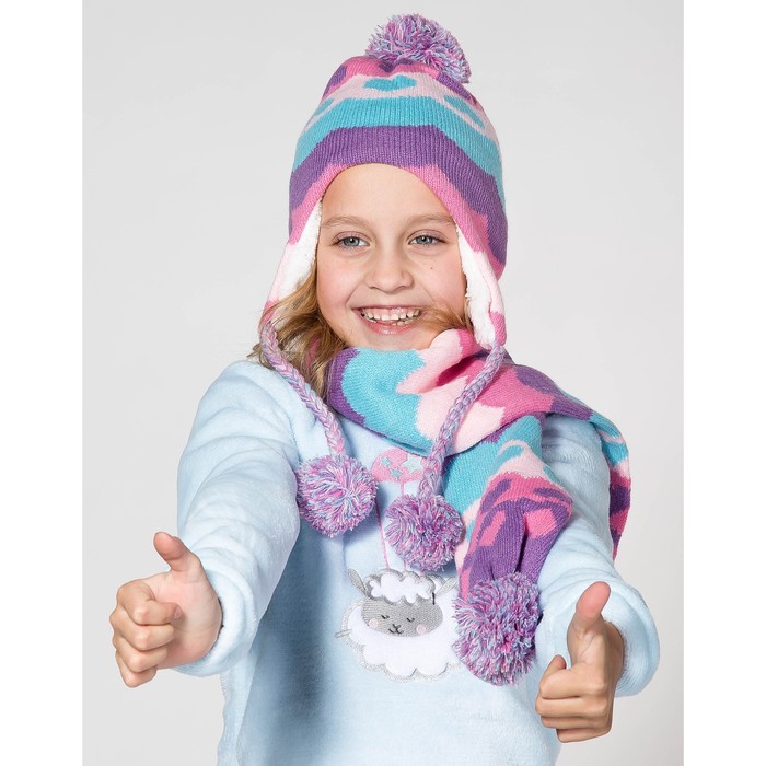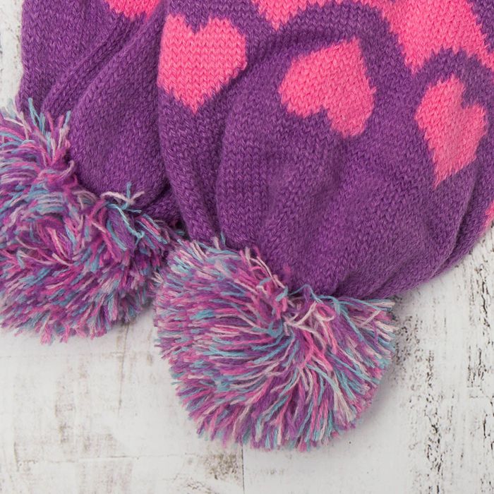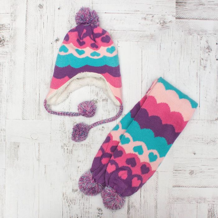 Комплект утеплённый для девочки "Сердечки" (шапка, шарф), р-р 50, цв.розовый/фиолетовый