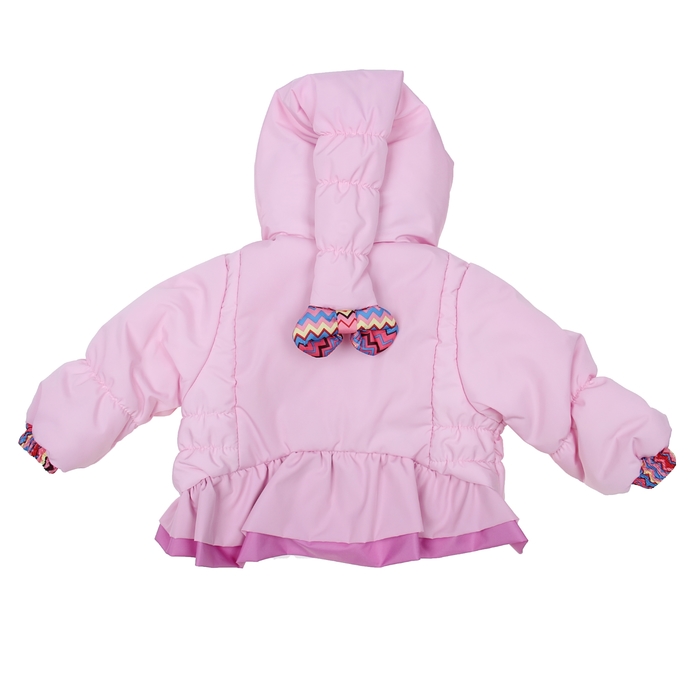 Капюшон украшен декоративной «косичкой», а на куртке спереди есть красивый принт.