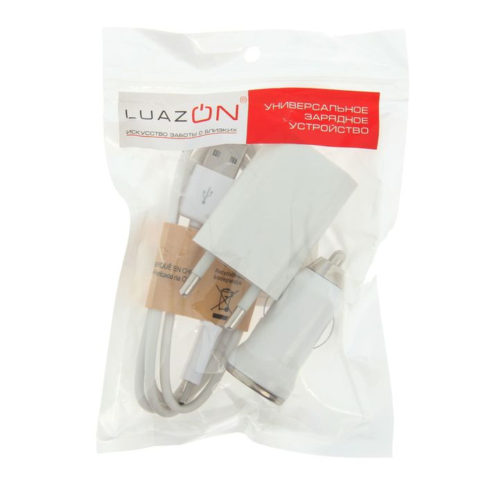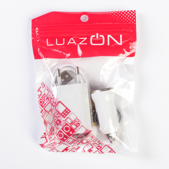 Комплект зарядки Luazon, 2 в 1, 1 А, с USB кабелем для micro USB, от 220/12 В