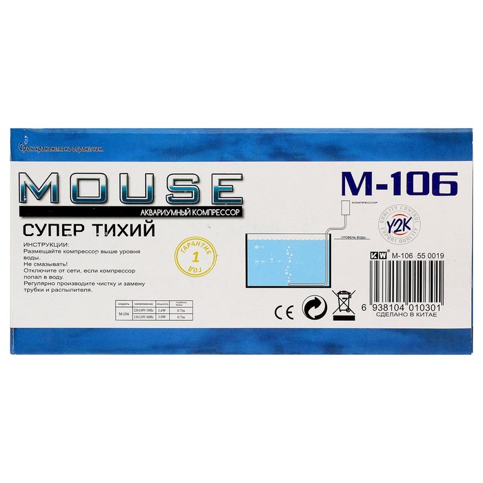 Компрессор MOUSE-106 двухканальный с регулятором, 4 Вт, 2.5 л/мин сочетает в себе оптимальные характеристики и надёжность. С этим устройством ваши рыбки всегда получат нужный им воздух.