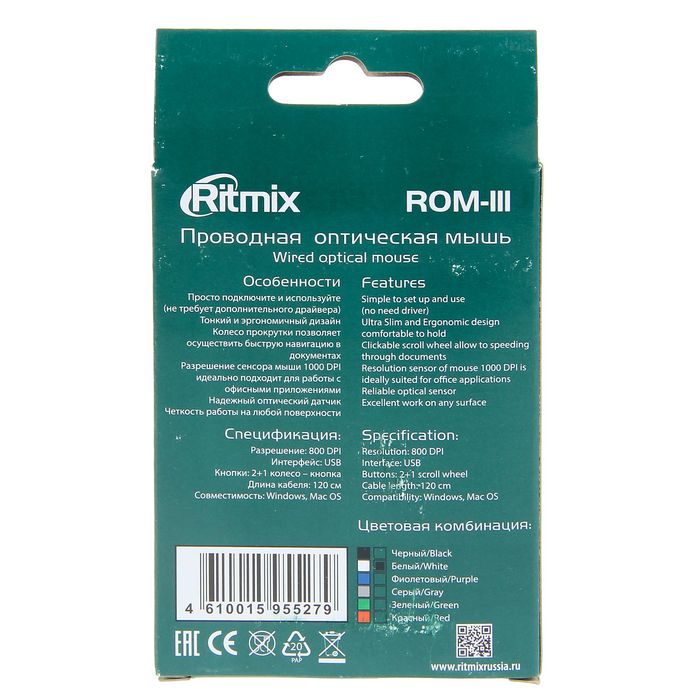 Проводная компьютерная мышь RITMIX ROM-111 подходит для использования дома и в офисе, для развлечений и работы со специализированным ПО. Компактное и лёгкое устройство обеспечивает точное позиционирование на любой поверхности, с ковриком или без. Курсор не зависает и не перескакивает, поэтому вам будет комфортно им управлять.