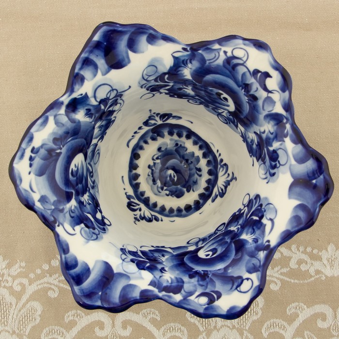 Очаруйте ваших гостей красотой, украсив стол посудой в технике «Гжель». Она изготовлена вручную и декорирована авторской росписью. Такое изделие станет прекрасным и изящным нарядом в интерьере кухни у любой хозяйки.