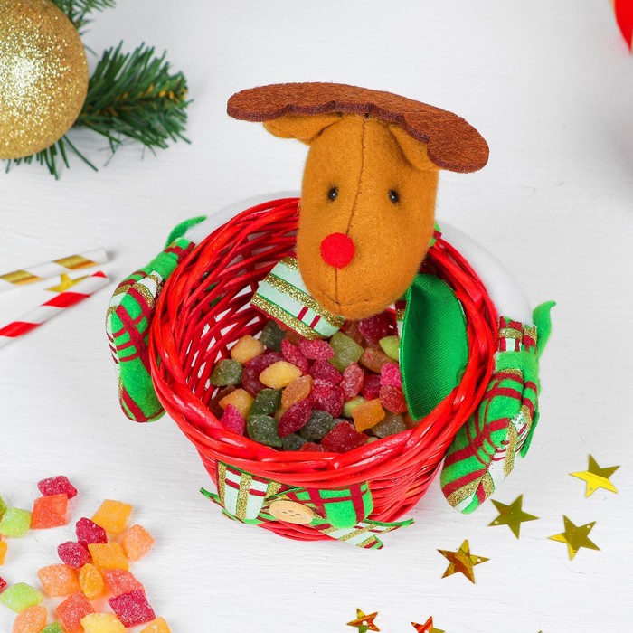Конфетница "Северный олень" с корзинкой, вместимость 100 г