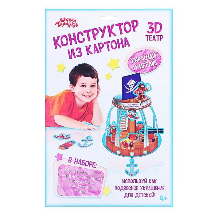 Конструктор из картона и 3D-театр "Пираты" подвесной станет любимой игрушкой крохи и замечательным украшением вашего дома!
