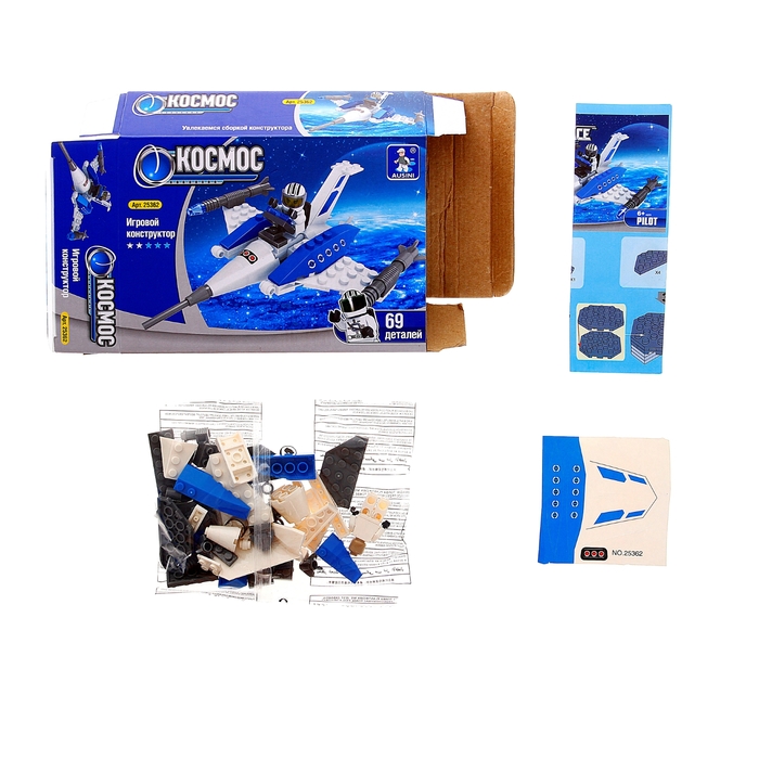 - Набор содержит 69 деталей и позволяет сконструировать космический бомбардировщик и фигурку пилота.