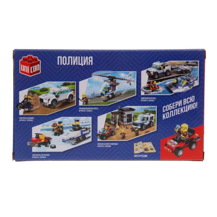 С набором торговой марки Unicon мальчишка станет стражем порядка и придумает захватывающие сценарии на полицейскую тематику. Из 88 деталей ребёнок соберёт квадроцикл и отправится на нём в погоню за злоумышленником. На манёвренной технике малыш без труда обойдёт все препятствия и настигнет преступника.