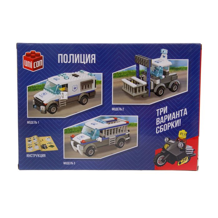 Полицейский броневик необходим юному стражу порядка, чтобы ловить особо опасных преступников. С набором торговой марки Unicon ребёнок соберёт один из трёх вариантов внедорожника и отправится на выполнение секретной операции.