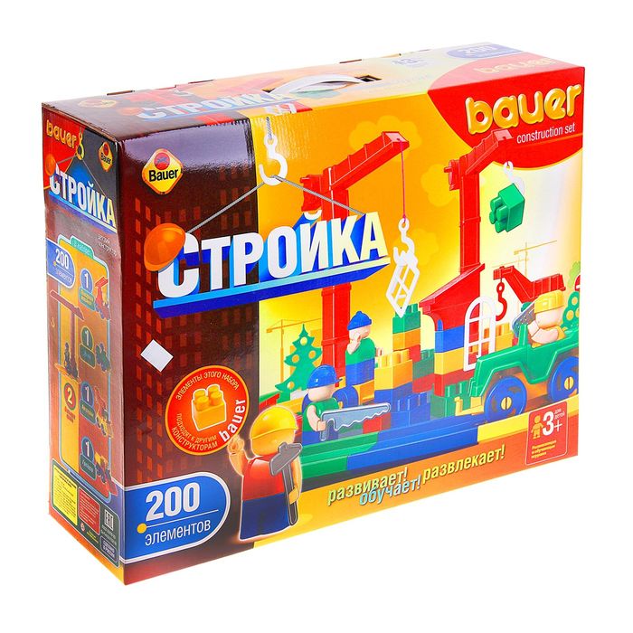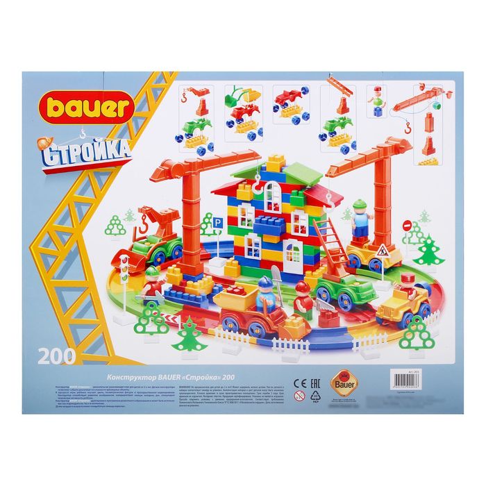 Вся продукция ТМ Bauer изготавливается из гибкого прочного полипропилена, который не причинит вреда ребенку. Элементы окрашены в импортную нетоксичную краску, которая сохраняет яркость оттенков в течение неограниченного периода использования. Собирать конструктор из качественных деталей - одно сплошное удовольствие для маленьких детей. Все части легко соединяются и разъединяются без особых усилий. Наборы из разных серий взаимозаменяемы и дополняемы, то есть конструктор «Стройка», 200 элементов можно дополнить набором из любой другой серии, расширив пространство для творчества.