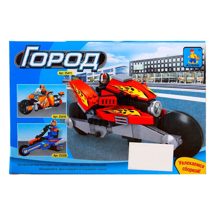 «Супербайк» — это мотоцикл нового поколения. С набором торговой марки Ausini ребёнок соберёт неуловимый болид и устроит захватывающие гонки.